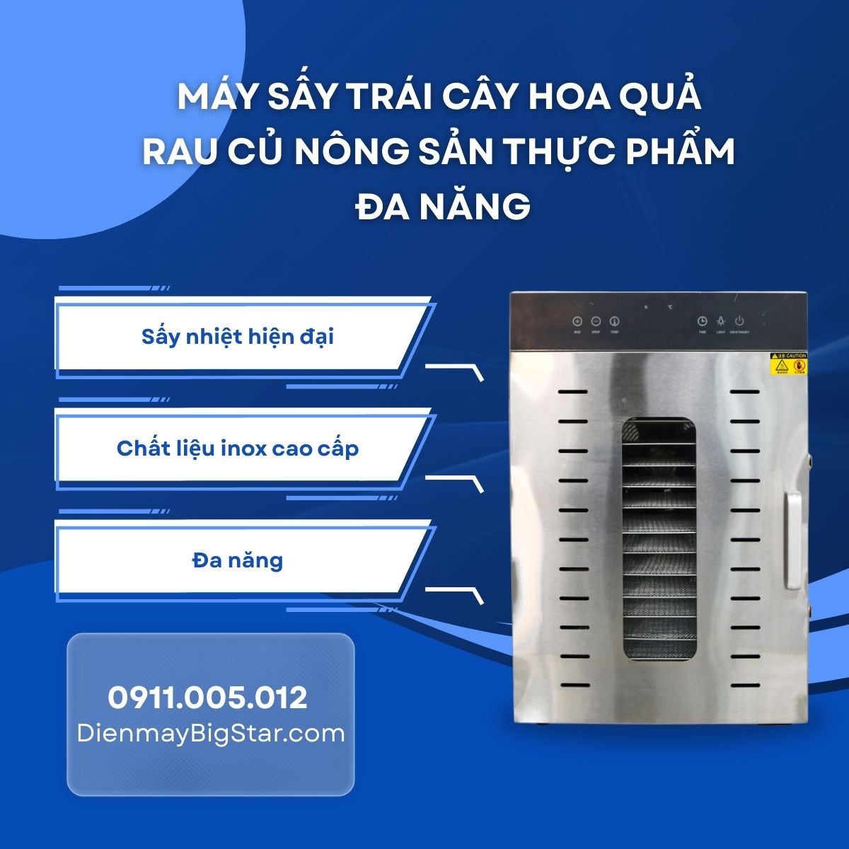 Nếu quý khách có nhu cầu tư vấn cũng như mua máy sấy hoa quả thực phẩm thương mại, xin vui lòng liên hệ ngay với Điện máy BigStar qua số Hotline: 0911.005.012. Đội ngũ nhân viên tại Điện máy BigStar luôn hỗ trợ quý khách tận tình, tư vấn chi tiết nhất. Điện máy BigStar hân hạnh được phục vụ quý khách!