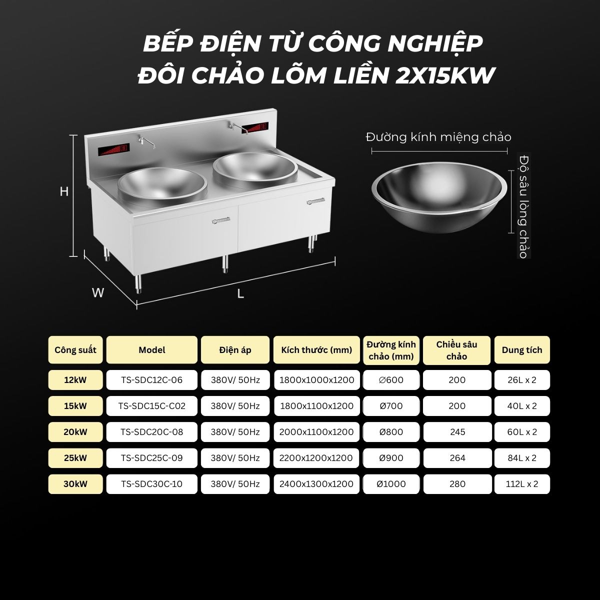 Bếp điện từ công nghiệp đôi chảo lõm liền TS-SDC15C-C02 năng suất mạnh mẽ, hiện đại