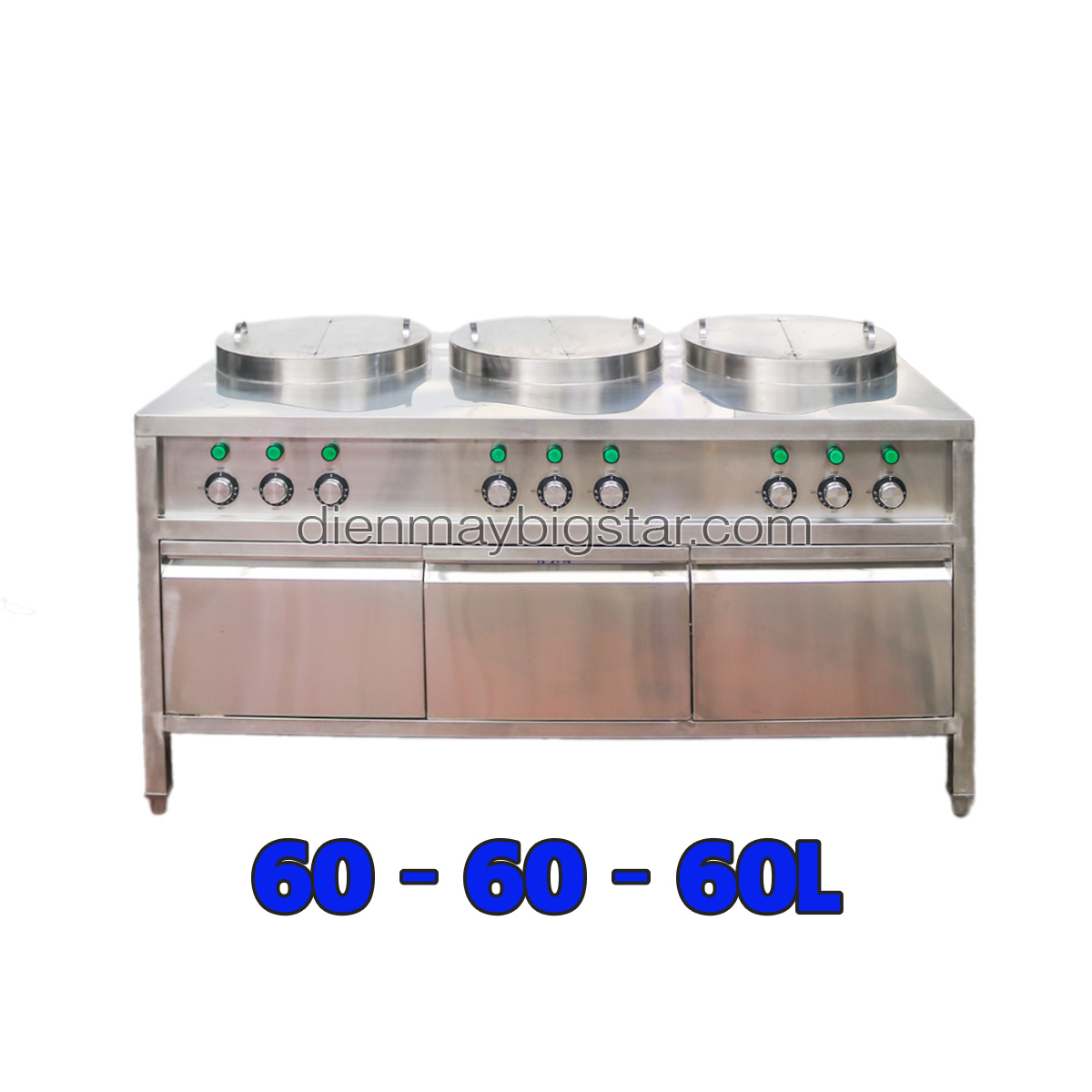 Bộ nồi nấu phở 60L là thiết bị nhà bếp chuyên dụng, được thiết kế để hầm xương – nấu nước lèo – trụng bánh phục vụ cho các quán phở, bún bò, hủ tiếu, nhà hàng và bếp công nghiệp. Với thiế kế 3 nồi riêng biệt, dung tích mỗi nồi lên đến 60 lít, bộ sản phẩm đáp ứng hoàn hảo nhu cầu chế biến thực phẩm với sản lượng lớn, vận hành liên tục trong nhiều giờ mà vẫn đảm bảo nước dùng trong, ngọt vị xương và giữ trọn chất dinh dưỡng.