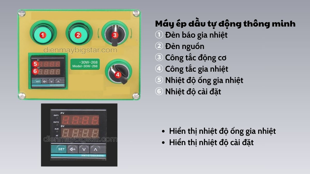 Bảng điều khiển được thiết kế trực quan với các nút bấm, công tắc và màn hình hiển thị rõ ràng, giúp người dùng dễ dàng điều chỉnh các thông số như nhiệt độ, tốc độ ép. Sự đơn giản khi cài đặt và điều chỉnh giúp tối ưu hóa quá trình sử dụng và giảm thiểu sai sót.