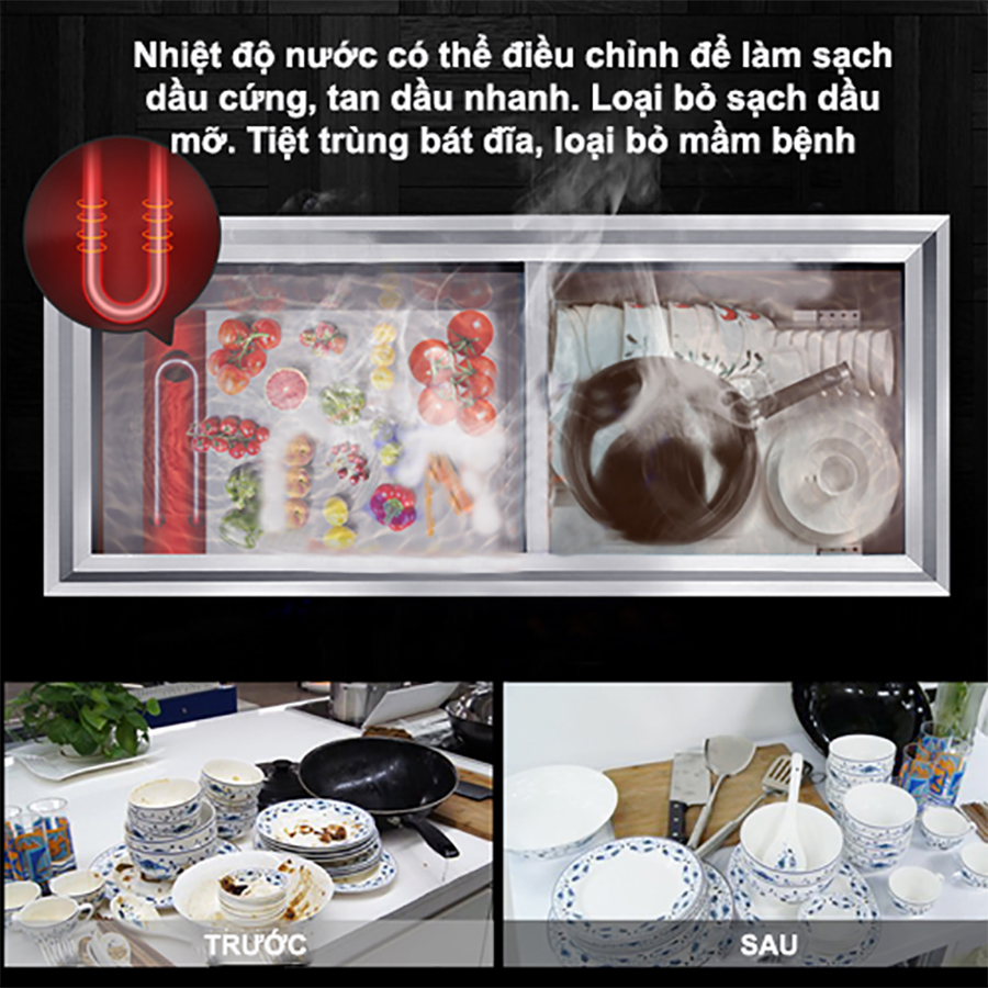 Trả lời: Giúp tiết kiệm thời gian, nhân công, làm sạch sâu mọi ngóc ngách, diệt khuẩn hiệu quả và kéo dài tuổi thọ chén bát.