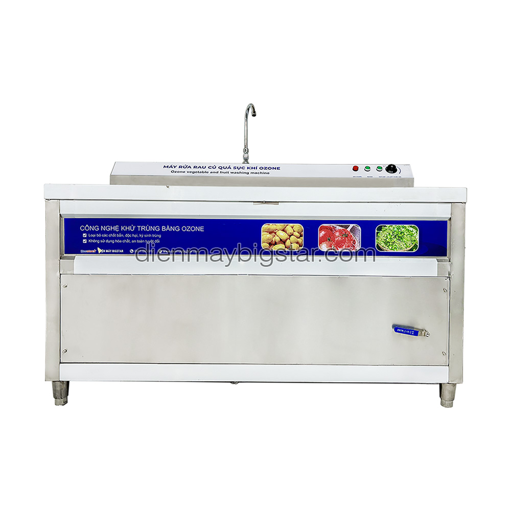Với thiết kế có phần khá to lớn,. Thế nhưng máy rửa rau củ công nghiệp của Điện máy BIGSTAR lại hoạt động với nguyên lý khá đơn giản. Máy sử dụng công nghệ Ozone sục khí để tạo bọt khí làm sạch rau củ quả. Đồng thời, việc sử dụng khí áp suất cao để tạo bọt, bơm nước tuần hoàn và nâng cao áp lực phun nước theo chu kỳ kết hợp hệ thống bơm tuần hoàn lưu thông nước còn giúp lọc nhanh chóng. Cũng như đẩy các tạp chất vào hộp lọc.