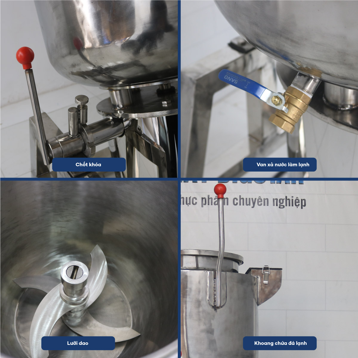 Điểm đặc biệt của máy xay giò chả đó chính là thiết kế 2 lớp với 1 khoang đựng nguyên liệu và 1 khoang chứa đá lạnh duy trì nhiệt độ trong quá trình xay giò, đảm bảo giò luôn tươi ngon, không bị biến dạng hay vữa. Nếu bạn đang tìm kiếm một thiết bị hỗ trợ sản xuất công nghiệp với năng suất khủng, độ bền cao và đảm bảo chất lượng thành phẩm, máy xay giò chả 50kg 2 lớp chính là sự đầu tư thích hợp.