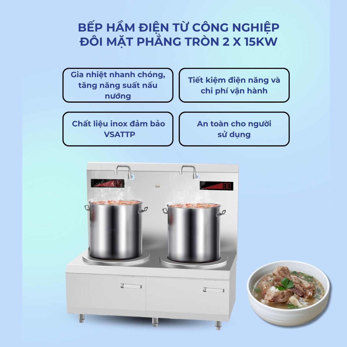 47 | Bếp hầm đôi điện từ công nghiệp 15kW | 31.500.000 |