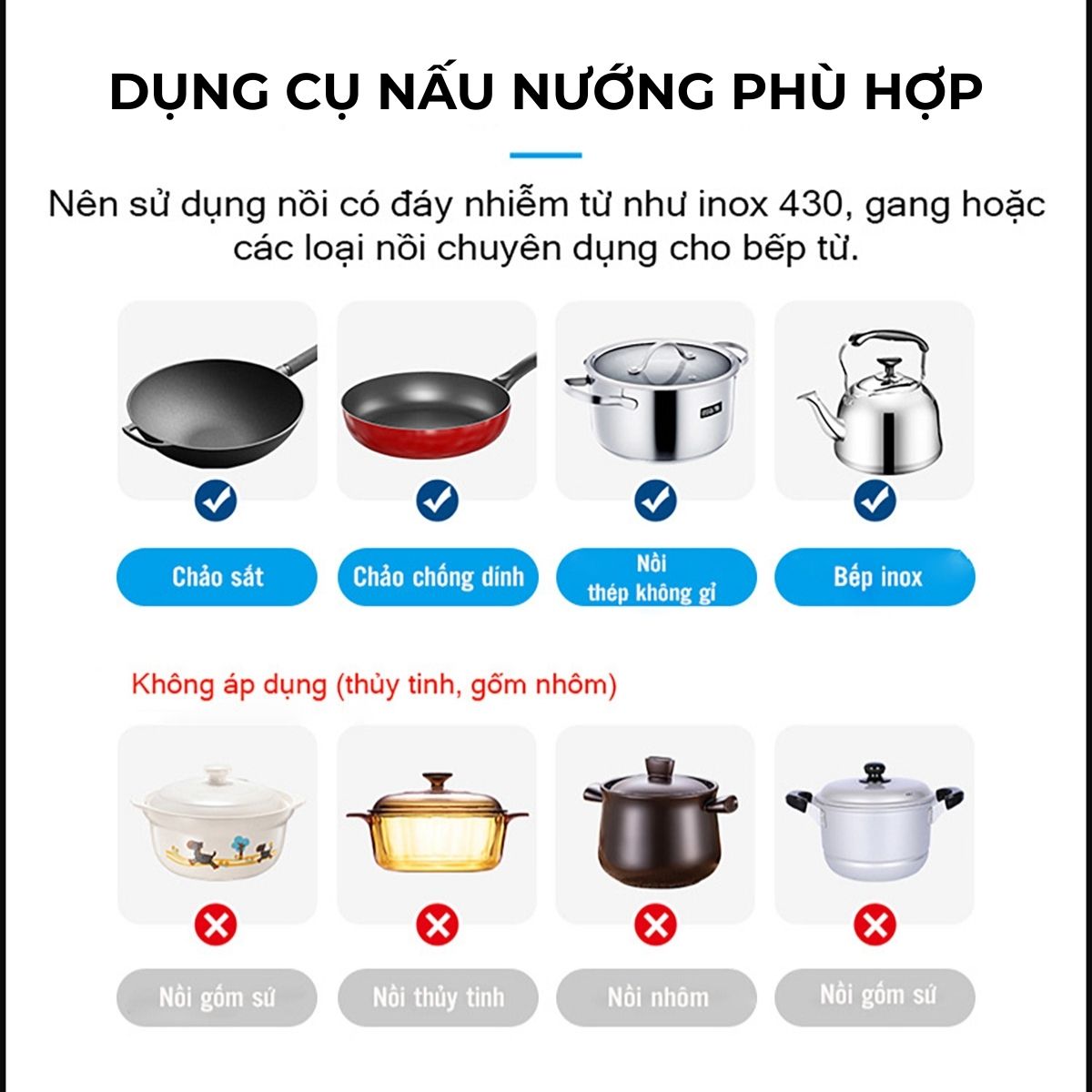 ✅ Nấu nhanh gấp 2–3 lần bếp gas nhờ công nghệ cảm ứng từ, truyền nhiệt trực tiếp vào đáy nồi/chảo.